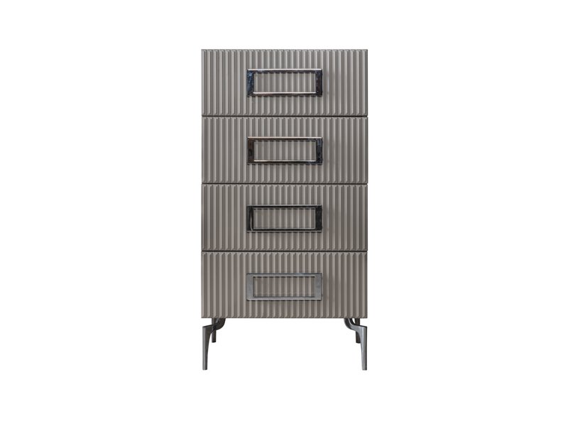 Komodin Malzemesi Gövde melamin kaplı yonga levha, çekmece önü ise mebrandan üretilmiştir. Ayakları ve kulbu krom kaplı metal kulptur. Çekmece rayları frenli tandem raydır.