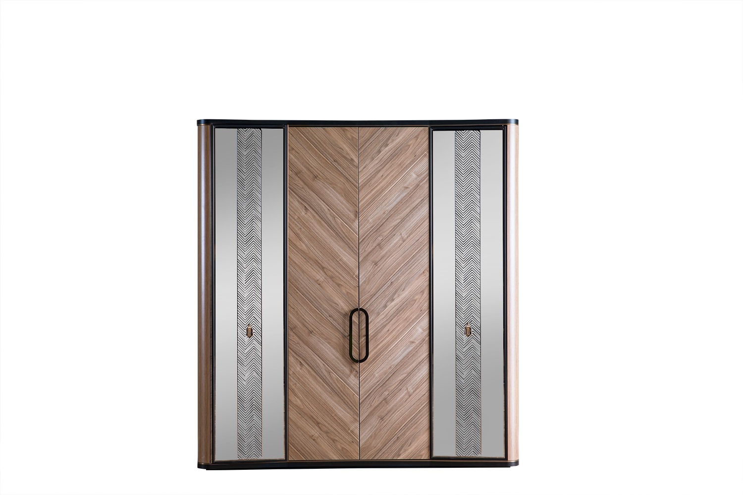 Gardırop Malzemesi Suntalam, sağ sol dış kapakların etrafında ahşap çerçeve profiller yer almaktadır ve sağ - sol yanların ön kısmında PVC kaplı C MDF profil kullanılmıştır. Dolap aynaları selegraf baskılı bronz aynadır.
