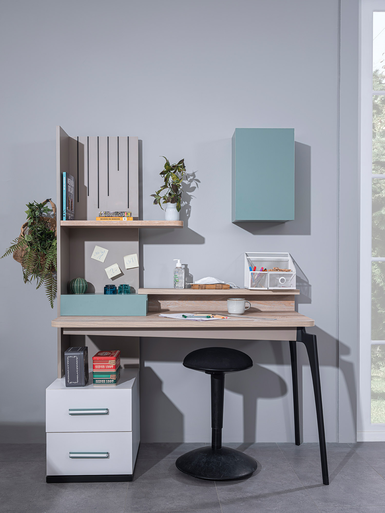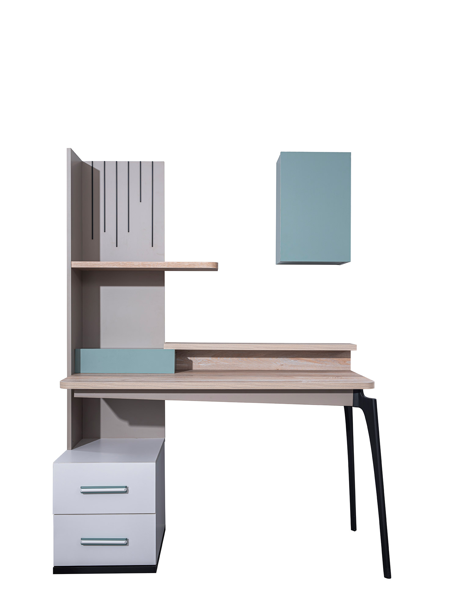 Ürünün kitaplıklı çalışma masası oldukça fonksiyonel olarak tasarlanmış