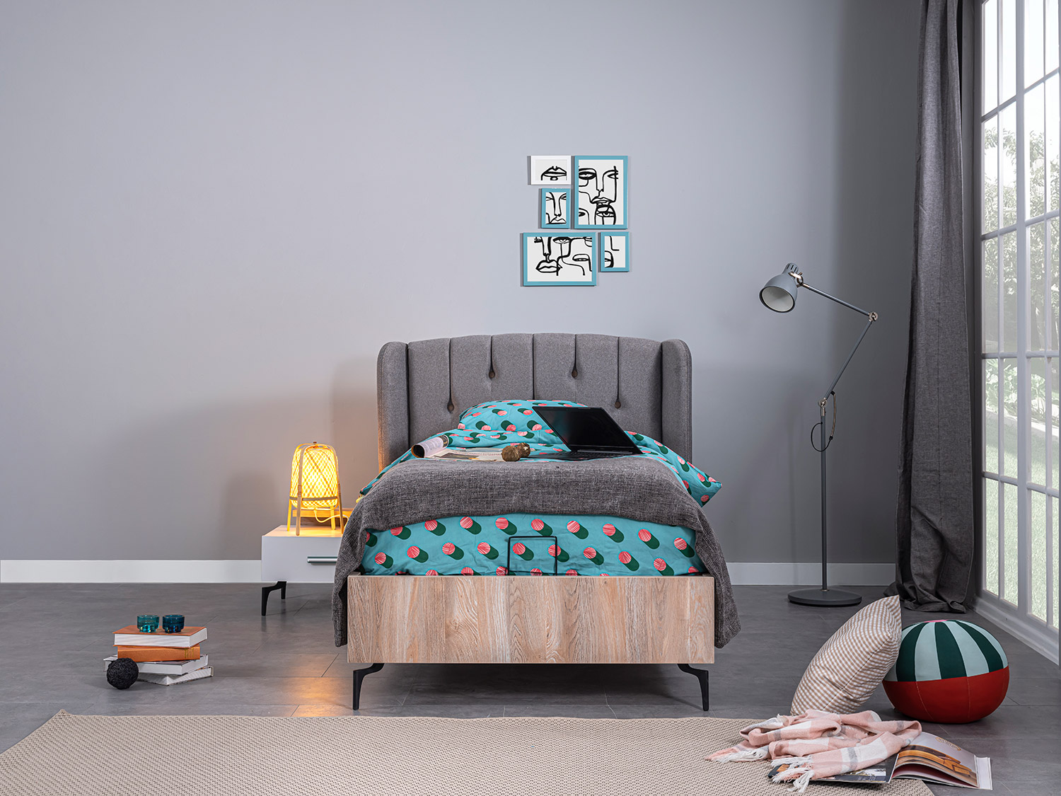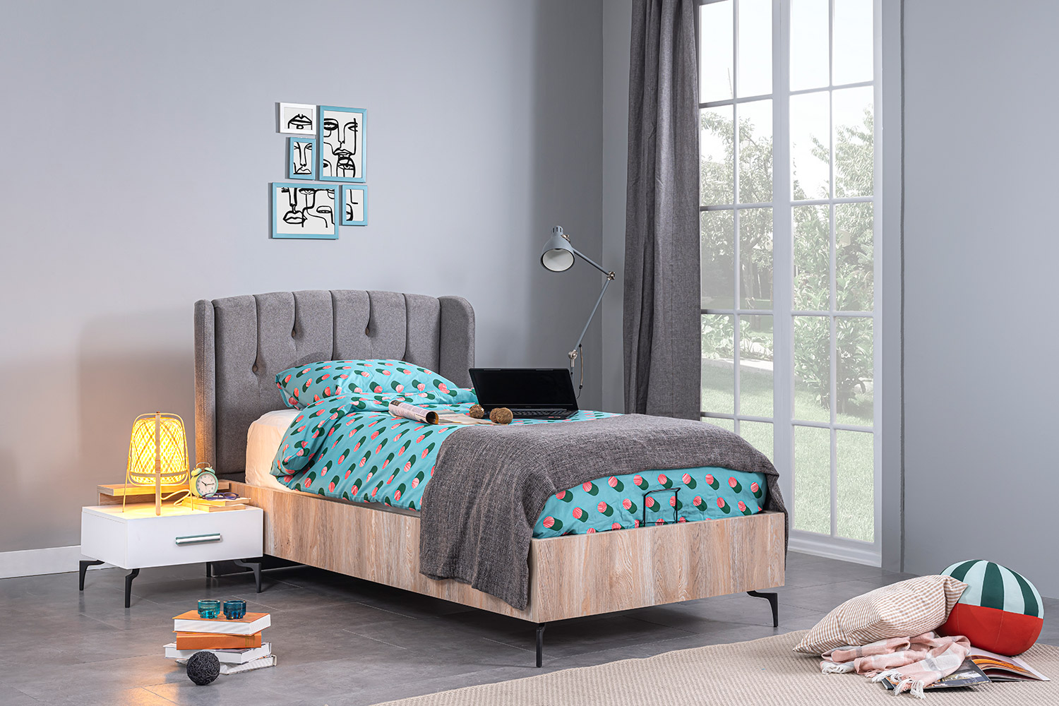 Karyola Başlığı: Yonga levha üzerine sünger + kumaş döşenerek üretilmiştir.