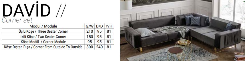 Soft renkleri ile sade ve son derece şık bir oturma grubudur. Koltuk kenarlarında ve sırt minderlerindeki birbirlerini tamamlayan detaylar bu özel tasarıma hareket katmaktadır. Tek kişilik yatak olma özelliğine sahiptir ve kumaşı silinebilir. Weltew Home süngerleri ve ergonomik kollukları ile orta yumuşaklıkta bir oturum imkanı sağlar. Sırt kısmı ise hareketli mekanizmaya sahip kuştüyü yumuşaklıktadır. Yerden yüksek bir model olduğu için hareket ettirmenize gerek kalmadan altı silinebilir. Yeni nesil robot süpürgeler rahatlıkla altına girebilecek kadar yüksek bir modeldir.