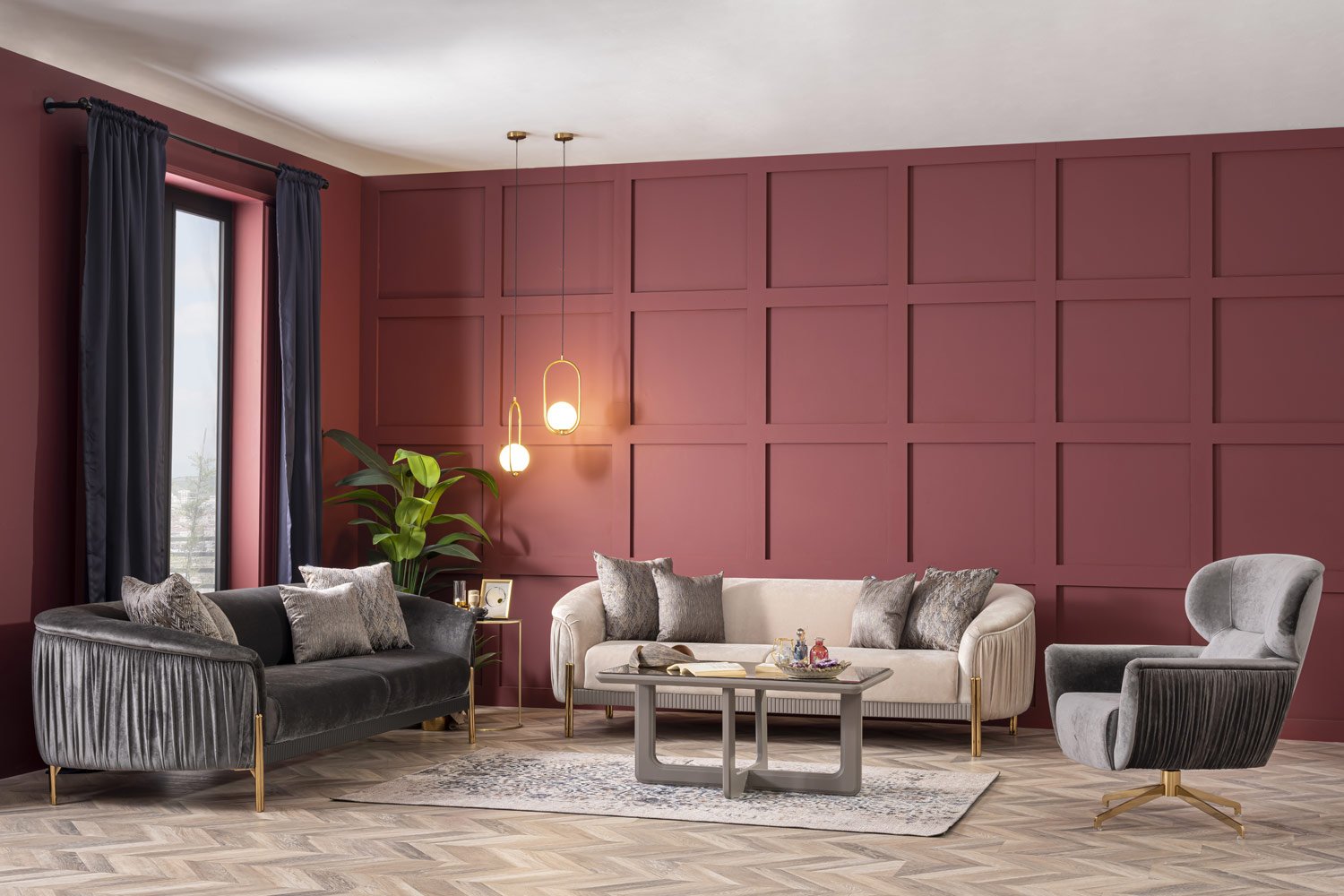 Geniş sırt oturumu ile berjeri tamamlayan gold renk ayak detayı. Dönerli Mekanizmaya sahip ve geniş oturumu ile keyif koltuğu olarak da tercih edilmektedir.