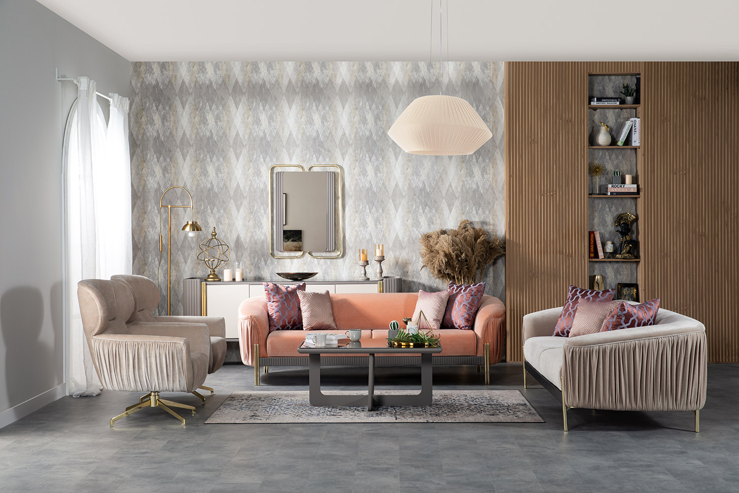 Geniş sırt oturumu ile berjeri tamamlayan gold renk ayak detayı. Dönerli Mekanizmaya sahip ve geniş oturumu ile keyif koltuğu olarak da tercih edilmektedir.