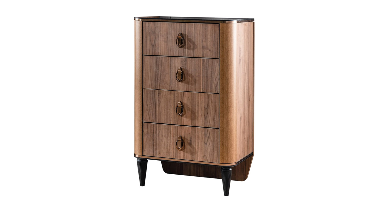 Komodin Malzemesi Suntalam malzemeden üretilmiştir. Sağ - sol yanların ön kısmında PVC kaplı C MDF profil kullanılmıştır. Ayakları plastiktir. Kulpları metaldir. Çekmece rayları frenli tandem raydır.