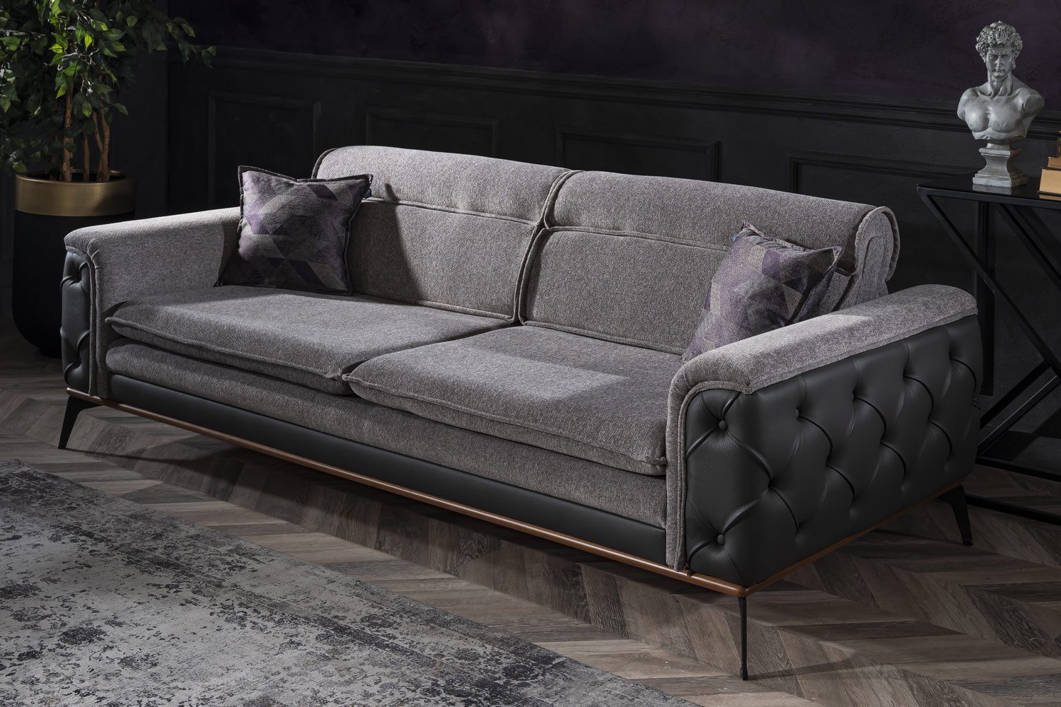 Yüksek konforlu, göz alıcı tasarımıyla dikkat çekiyor. Tasarıma zengin görsel alternatifler sunan kumaş ve kırlent uygulamaları, sırt minderinde ve kollarda kullanılan özel dikiş uygulamalarıyla özenli bir estetik anlayışı yansıtıyor.