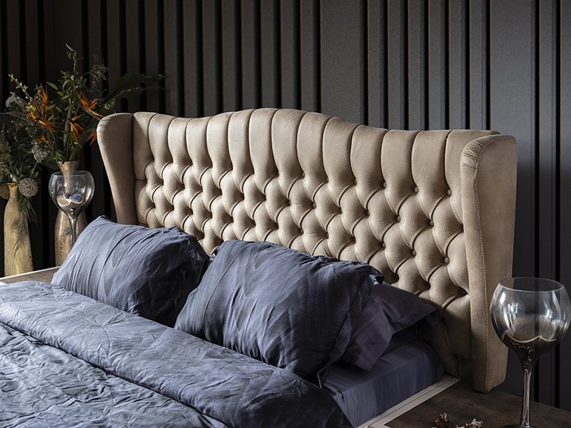 Karyola Başlığı Sunta üzerine sünger + kumaş döşenerek üretilmiştir.