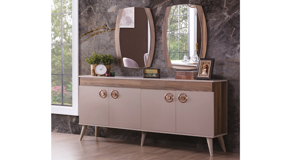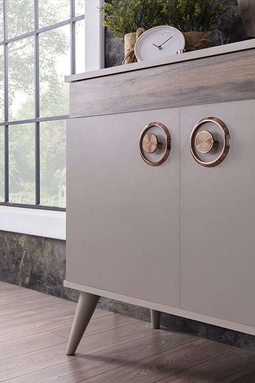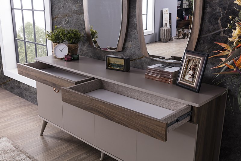 Konsol Malzemesi Gövde Suntalam. Kapaklarda kendinden frenli menteşe kullanılmıştır. Çekmece rayları çift açılımlı teleskopik raydır. Ayaklar plastiktir. Kulpları metaldir.