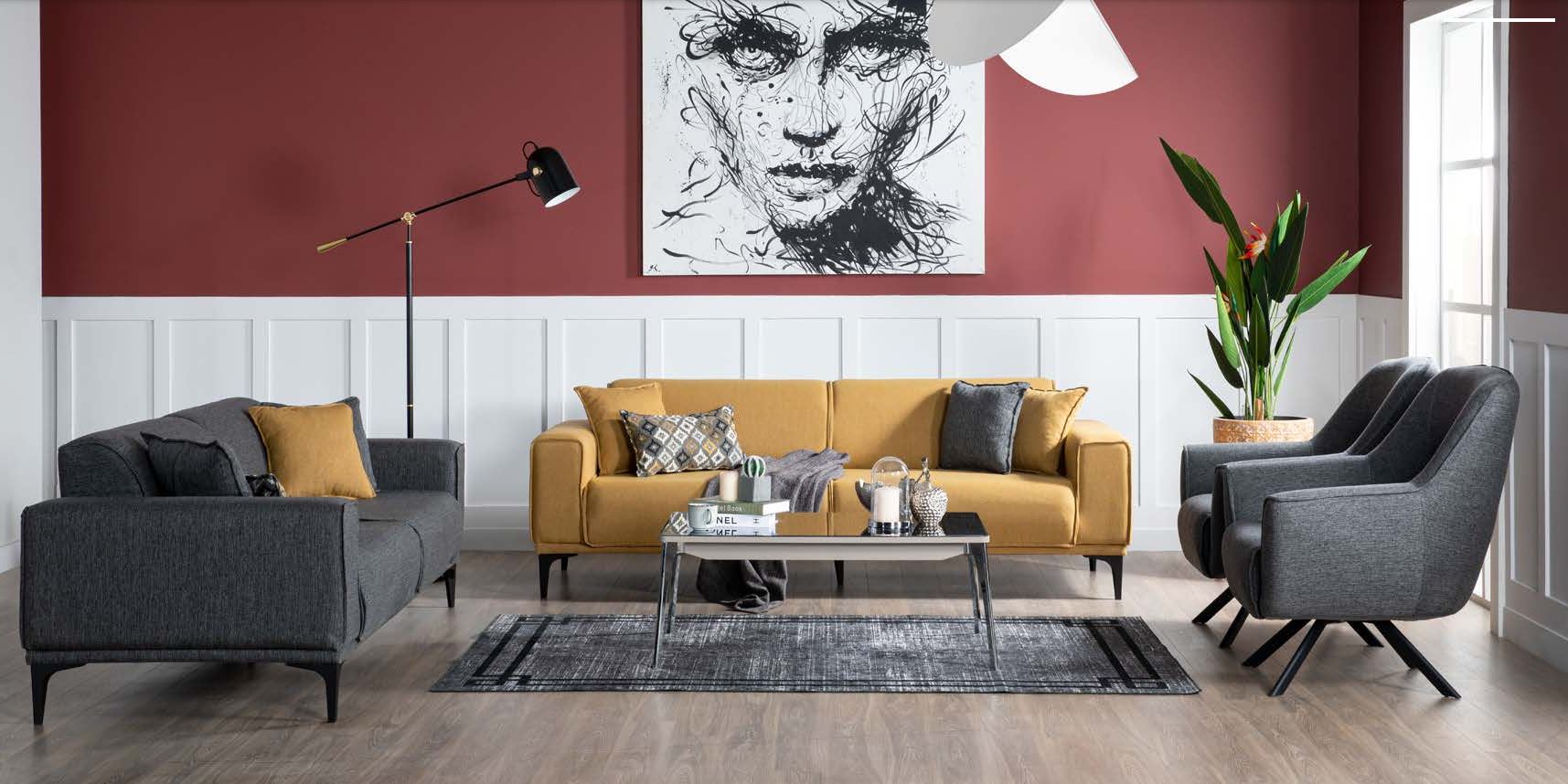 Mavi, Gri ve Hardal renk seçenekleriyle.