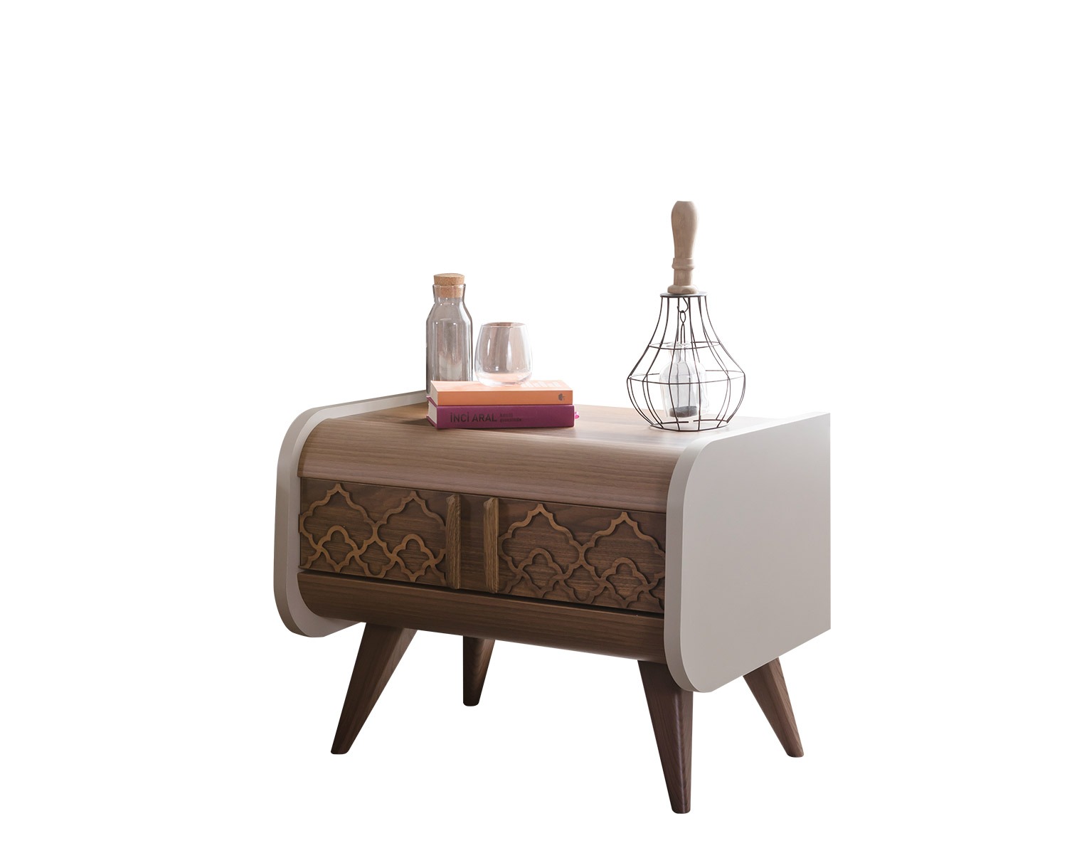 Komodin Malzemesi Suntalam malzemeden üretilmiştir. Çekmece önünde MDF desen vardır. Çekmece alt ve üstünde MDF papel bulunmaktadır. Kulpları metaldir. Çekmece rayları frenlidir.