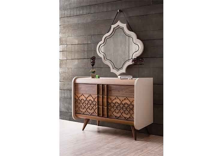 Şifonyer Malzemesi Suntalam malzemeden üretilmiştir. Çekmece önlerinde MDF desen vardır. Çekmece alt ve üstünde MDF papel bulunmaktadır. Ayaklar plastiktir. Kulpları metaldir. Çekmece rayları frenlidir.