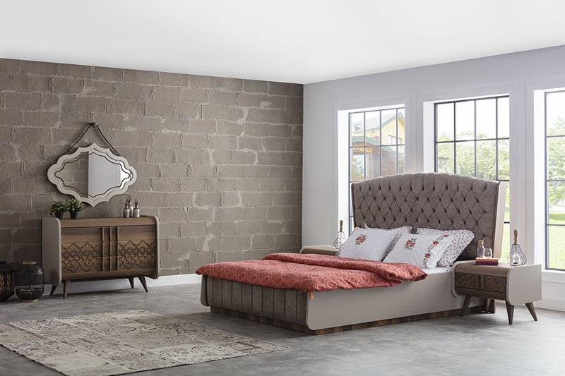 Karyola Başlığı Sunta üzerine sünger + kumaş döşenerek üretilmiştir.