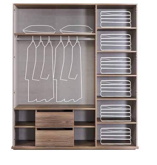 Dolap Fonksiyonu Kendinden frenli menteşeli kapak sistemi vardır. Dolap içinde iki adet çekmece, 1 adet alüminyum askılık bulunmaktadır.