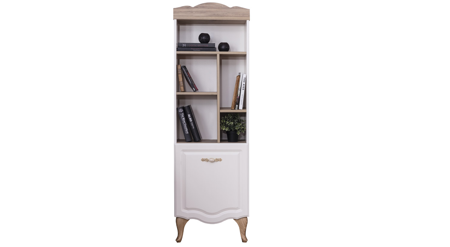 Kitaplık Malzemesi Suntalam malzemeden üretilmiştir. Kitaplık üst klapa MDF, kapak boyalı MDF den üretilmiştir. Kendinden frenli menteşeli kapak sistemi vardır. Ayaklar plastiktir. Kupları metal üzerinde desenli taş bulunan malzemeden yapılmıştır.