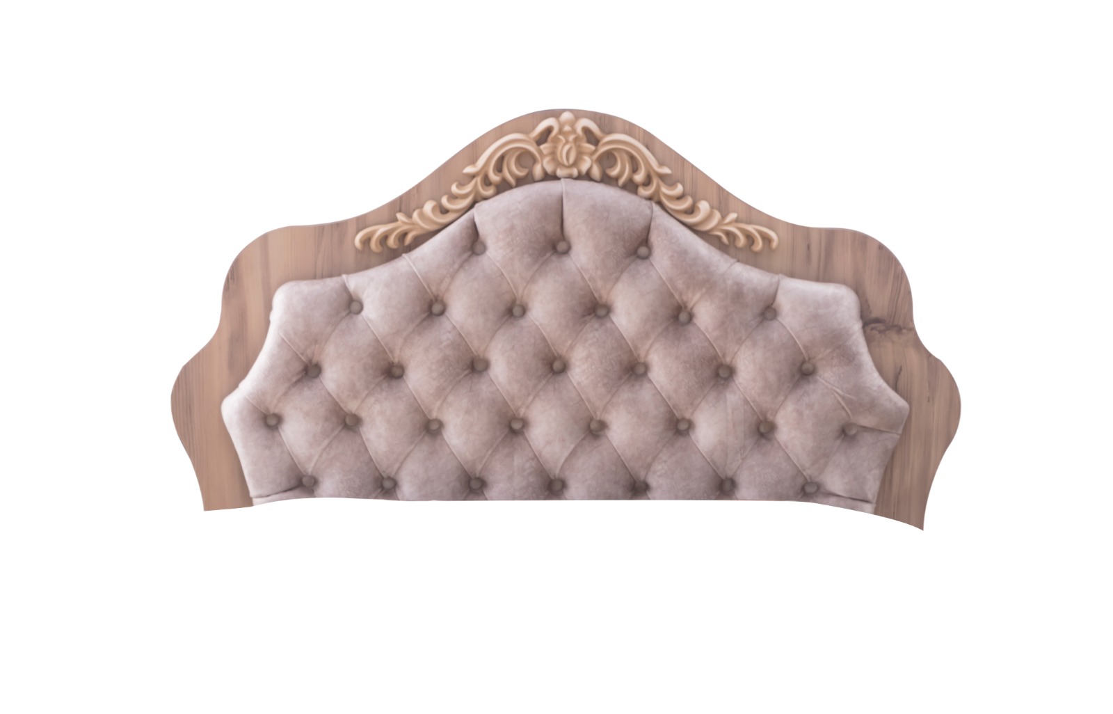 Karyola Başlığı  Sunta üzerine sünger + kumaş kapitoneli döşenerek üretilmiştir. Ayrıca başlığın üst tarafında boyalı poliüretan döküm desen yer almaktadır.