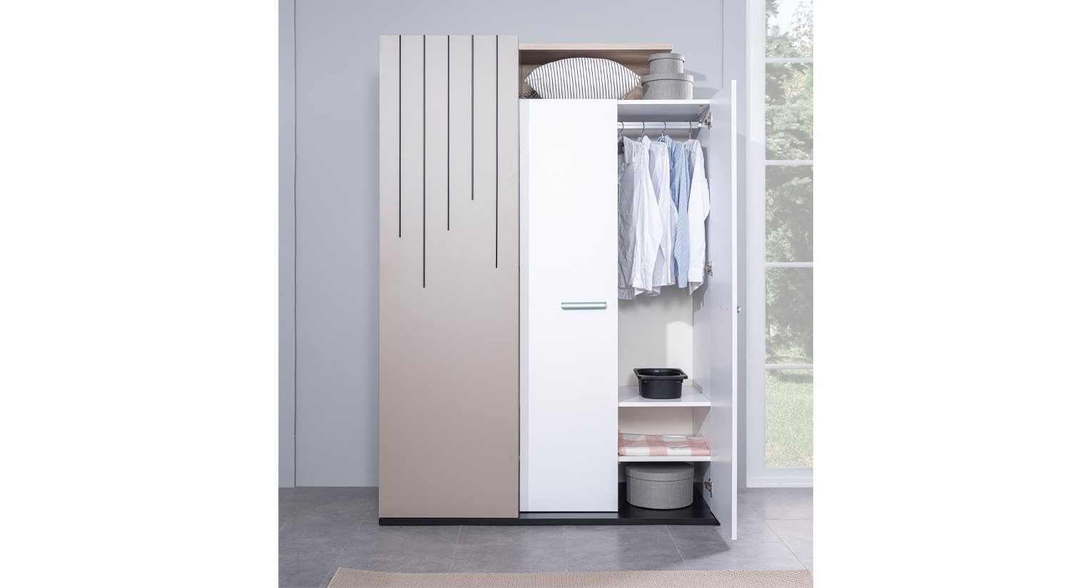 Gardropta kullanılan çekmece, raflar ve askılıklar ile birlikte ürüne fonksiyonellik kazandırılarak zengin bir kullanım alanı oluşturulmuştur.