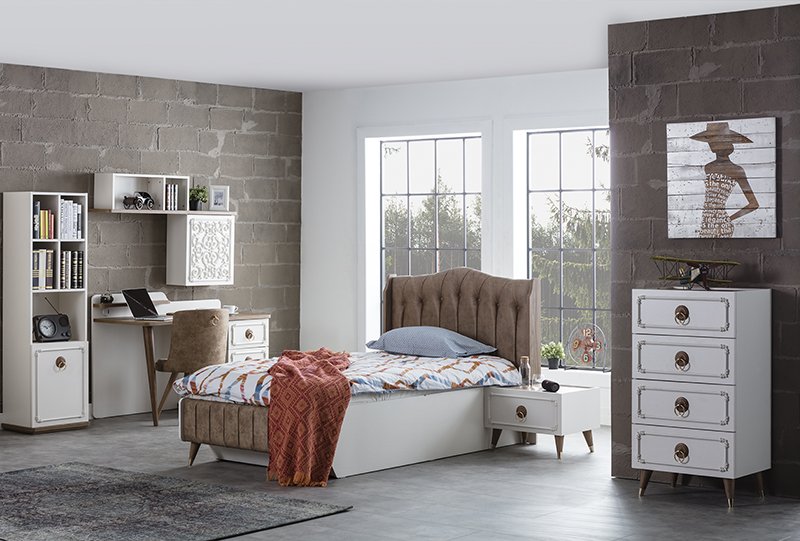 Gardırop kapaklarında kendinden frenli menteşeli kapak mekanizması vardır. Çekmece rayları bilyalıdır. |
