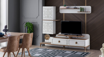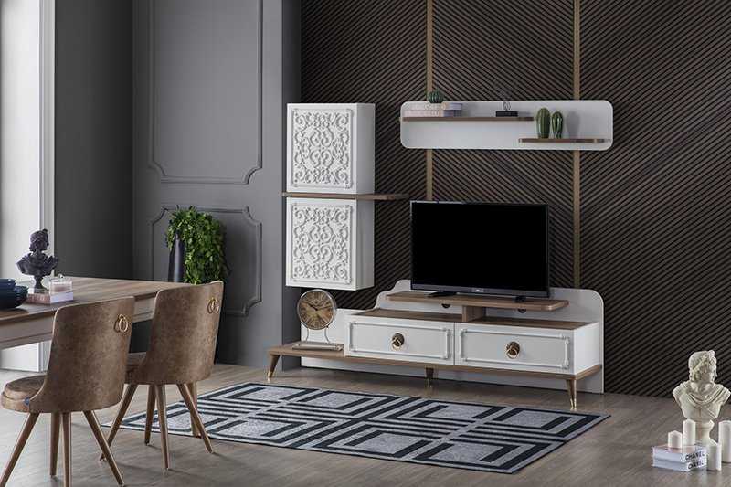 Boston Krem Stil Duvar Ünitesi Duvar Ünitesi Alt Blok