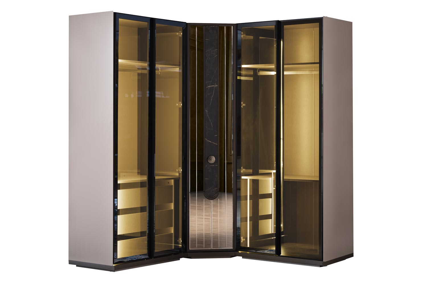 Gardırop Malzemesi: Suntalam, tek kapılı dolap kapaklarının etrafında ahşap çerçeve profiller yer almaktadır ve ön yüzeylerde altın yaldızlı sibu kullanılmıştır. Çekmeceli dolapların ve pantalonluklu dolabın kapakları alüminyum çerçeveli reflekte camdan yapılmıştır. Köşe dolap kapak etrafında ahşap çerçeve profiller yer almaktadır ve ön yüzeylerde PVC kaplı MDF profil kullanılmıştır. Çekmeceli dolaplarda ve pantalonluklu dolaplarda dokunmatik olarak açılıp kapanabilen led aydınlatma sistemi bulunmaktadır. Köşe dolap aynası lazemli bronz aynadır.