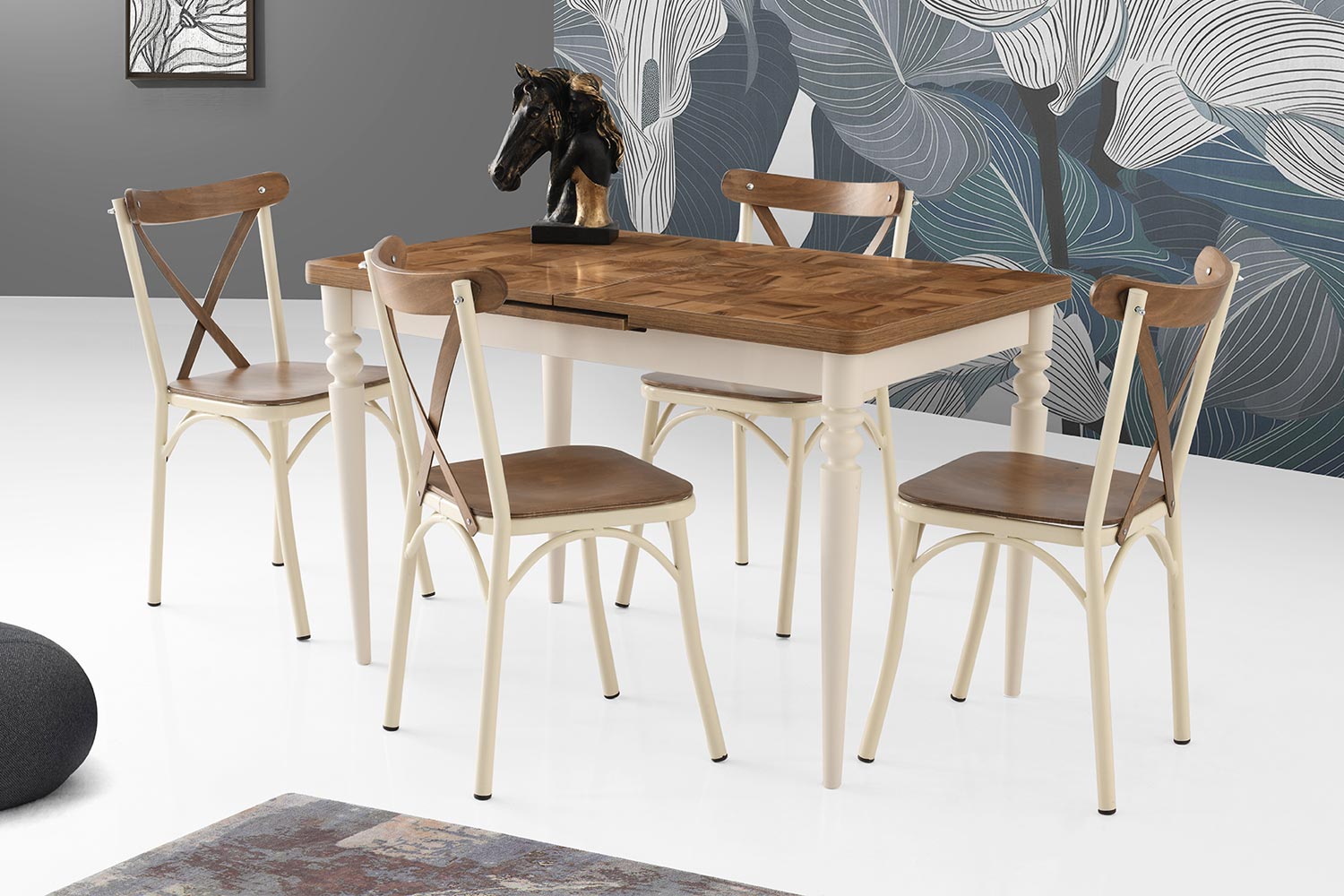 Ege Büyüyen Mutfak Masası Seti (Ekru-Ceviz Parke)