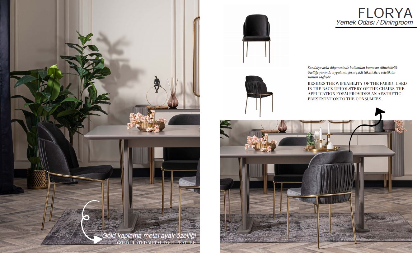 Sandalye arka döşemesinde kullanılan kumaşın silinebilirlik özelliği yanında uygulama form şekli tüketicilere estetik bir sunum sağlıyor.