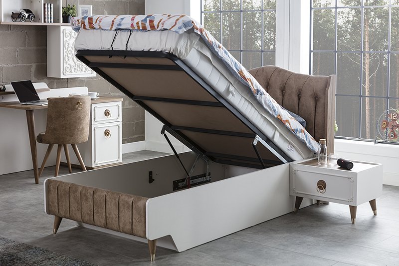 Baza Tipi Baza kapağı karyola çerçevesindeki demir baza yan bağlantı saçlarına monte edilmiştir.